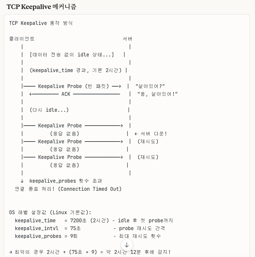 그러나 OS 단 Keepalive는 너무 느리니 미들웨어 수준의 hearbeat를 사용