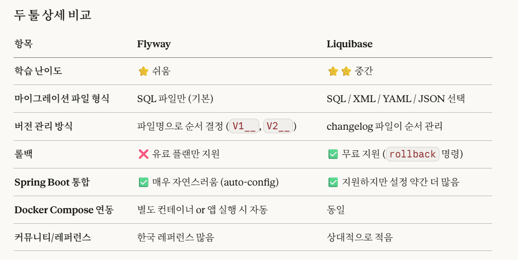 Git이 코드 변경 이력을 관리하듯이, Flyway는 DB 구조 변경 이력을 관리해요.